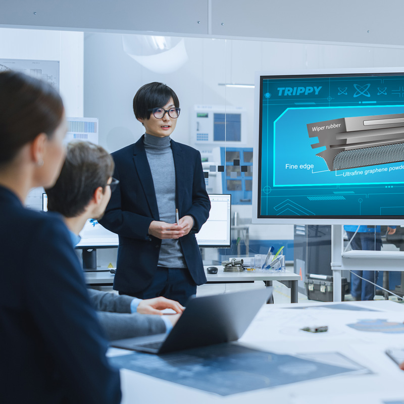 – Lưỡi gạt mưa TRIPPY được sản xuất bởi đối tác Tập đoàn Nhật Bản với hơn 70 năm kinh nghiệm, hiện đứng đầu Thế giới về số lượng và chất lượng trong sản xuất chi tiết phụ tùng bằng Cao Su cho ô tô, tàu hỏa, tàu thủy và máy bay.